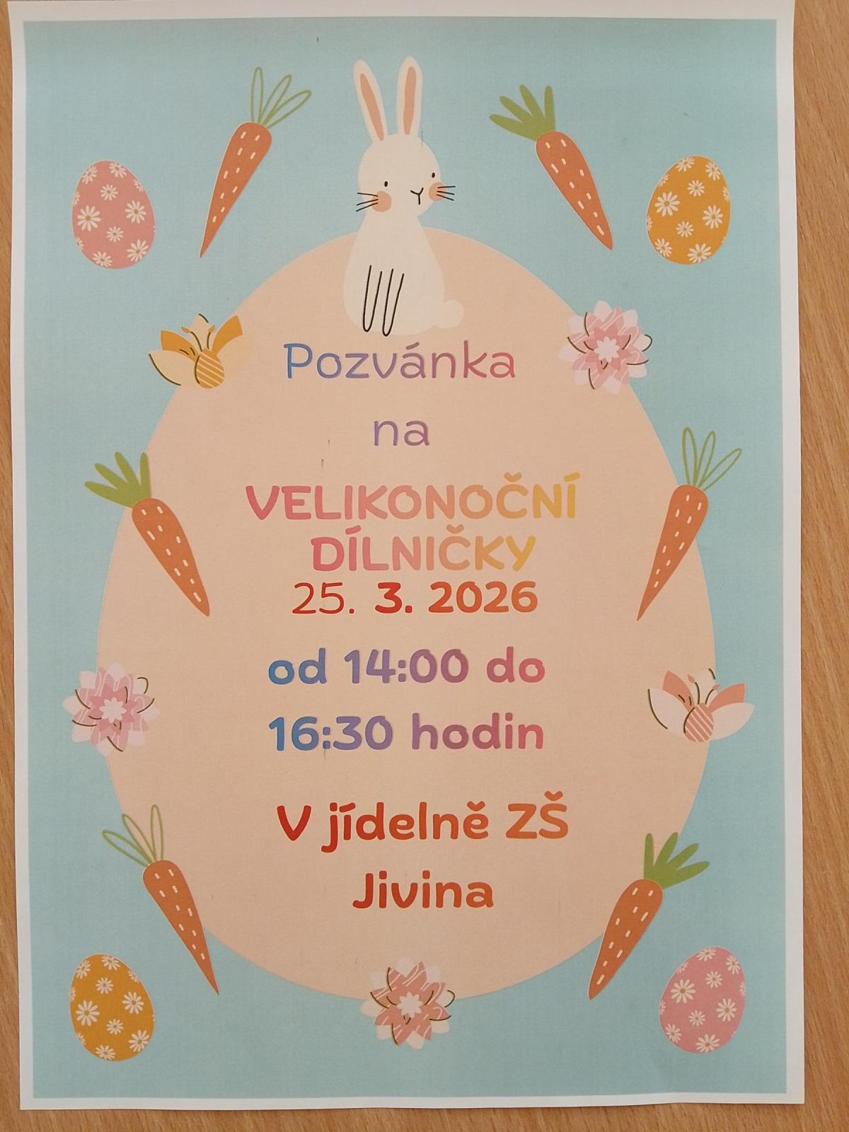 Srdečně zveme všechny děti i rodiče na velikonoční dílničky plné tvoření a jarní atmosféry. Přijďte si společně užít příjemné odpoledne!